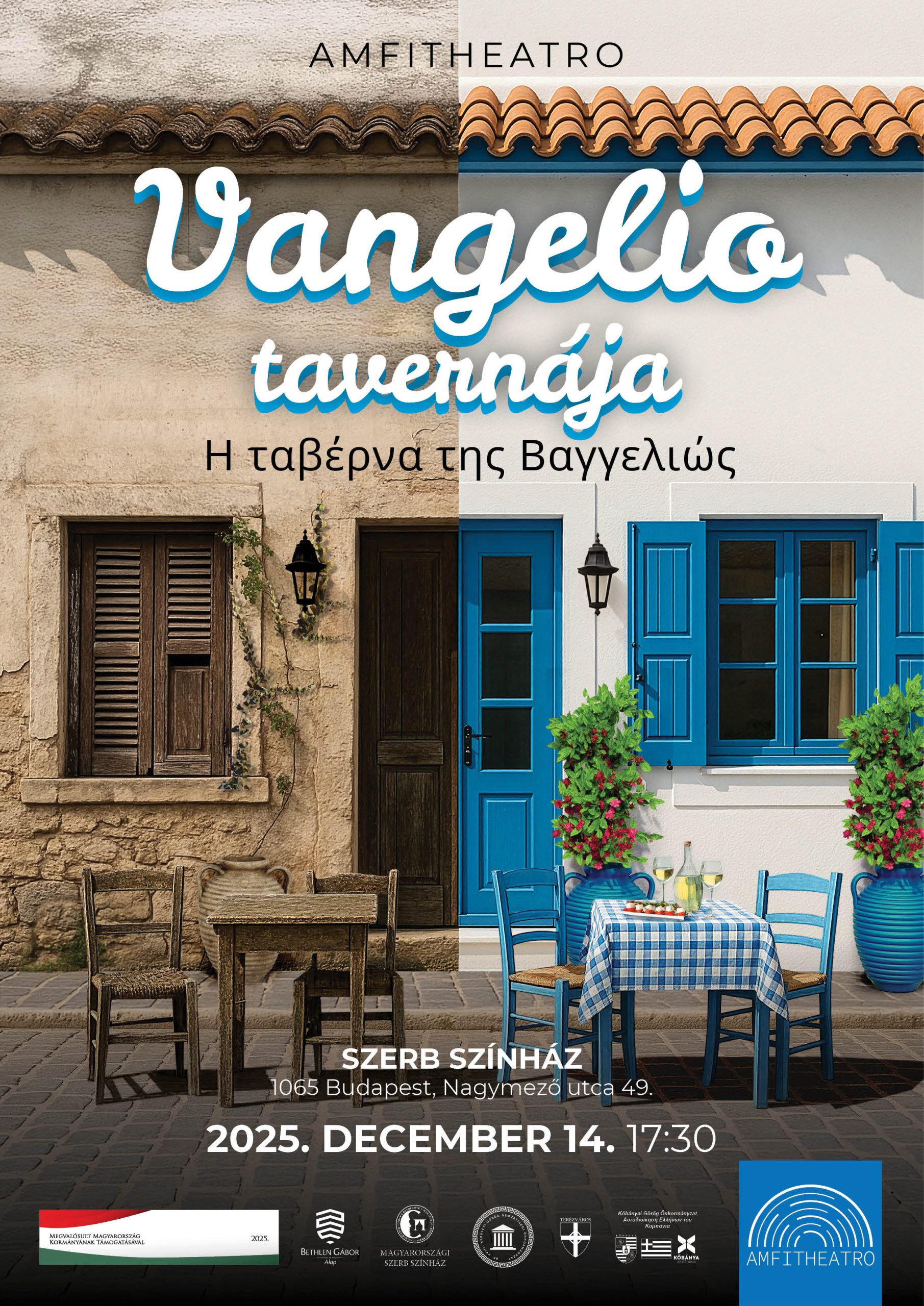 A Vangelio tavernája egy zenés-táncos előadás és egy szimbolikus történet, tisztelgés Caruha Vangelio előtt. A darab egy görög taverna világába repíti a nézőt, ahol a múlt és a jelen találkozik: Vangelio halála után a taverna bezárt, a zene pedig elhallgatott. A gyerekek azonban, akik a taverna történetein nőttek fel, összefognak, hogy zenével, tánccal és szeretettel új életet leheljenek szeretett helyükbe. Az előadás a görög hagyományok, a zene és a tánc ünnepe, ahol a gyerekek felelevenítik Vangelio szellemiségét – a nyelv, a kultúra és a művészet iránti szeretetet. A Vangelio tavernája egy meghitt és szimbolikus előadás, amely a közösség erejét, az összetartozást és a görög kultúra szépségét mutatja be.