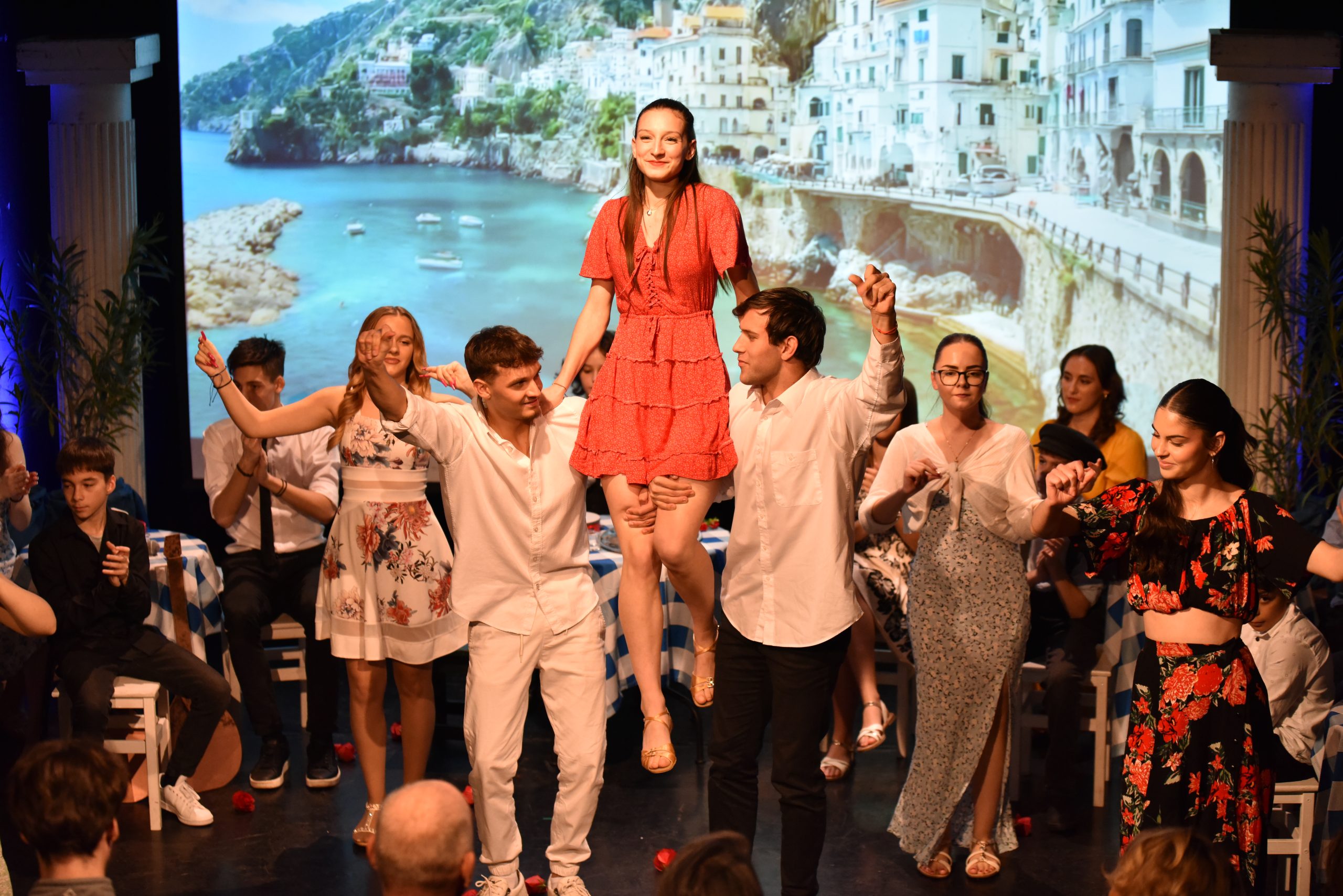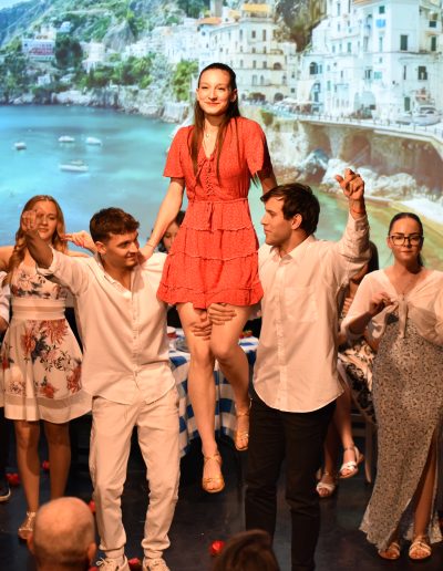 Amfitheatro.huA Vangelio tavernája egy zenés-táncos előadás és egy szimbolikus történet, tisztelgés Caruha Vangelio előtt. A darab egy görög taverna világába repíti a nézőt, ahol a múlt és a jelen találkozik: Vangelio halála után a taverna bezárt, a zene pedig elhallgatott. A gyerekek azonban, akik a taverna történetein nőttek fel, összefognak, hogy zenével, tánccal és szeretettel új életet leheljenek szeretett helyükbe. Az előadás a görög hagyományok, a zene és a tánc ünnepe, ahol a gyerekek felelevenítik Vangelio szellemiségét – a nyelv, a kultúra és a művészet iránti szeretetet. A Vangelio tavernája egy meghitt és szimbolikus előadás, amely a közösség erejét, az összetartozást és a görög kultúra szépségét mutatja be.